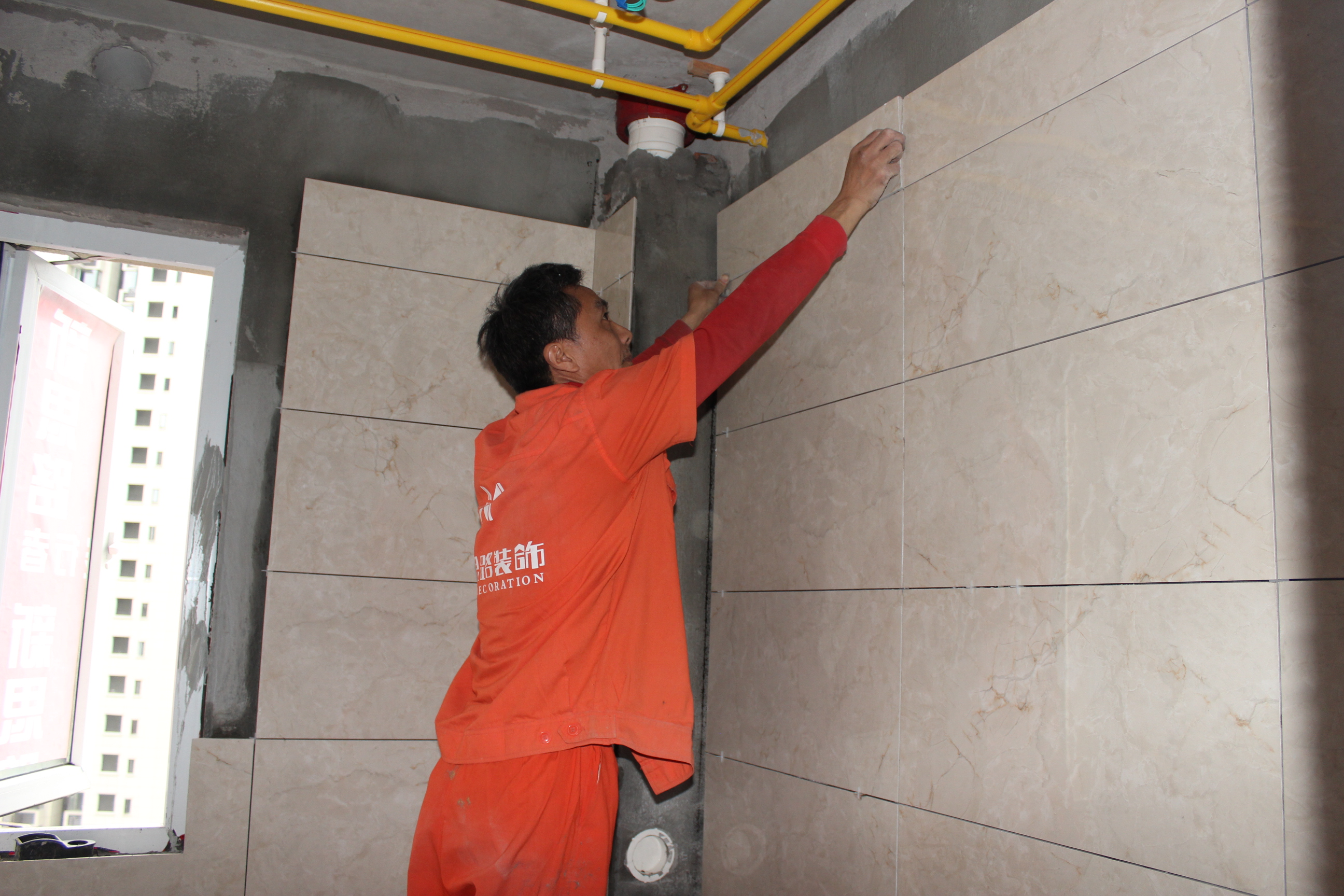 工人師傅正在貼磚